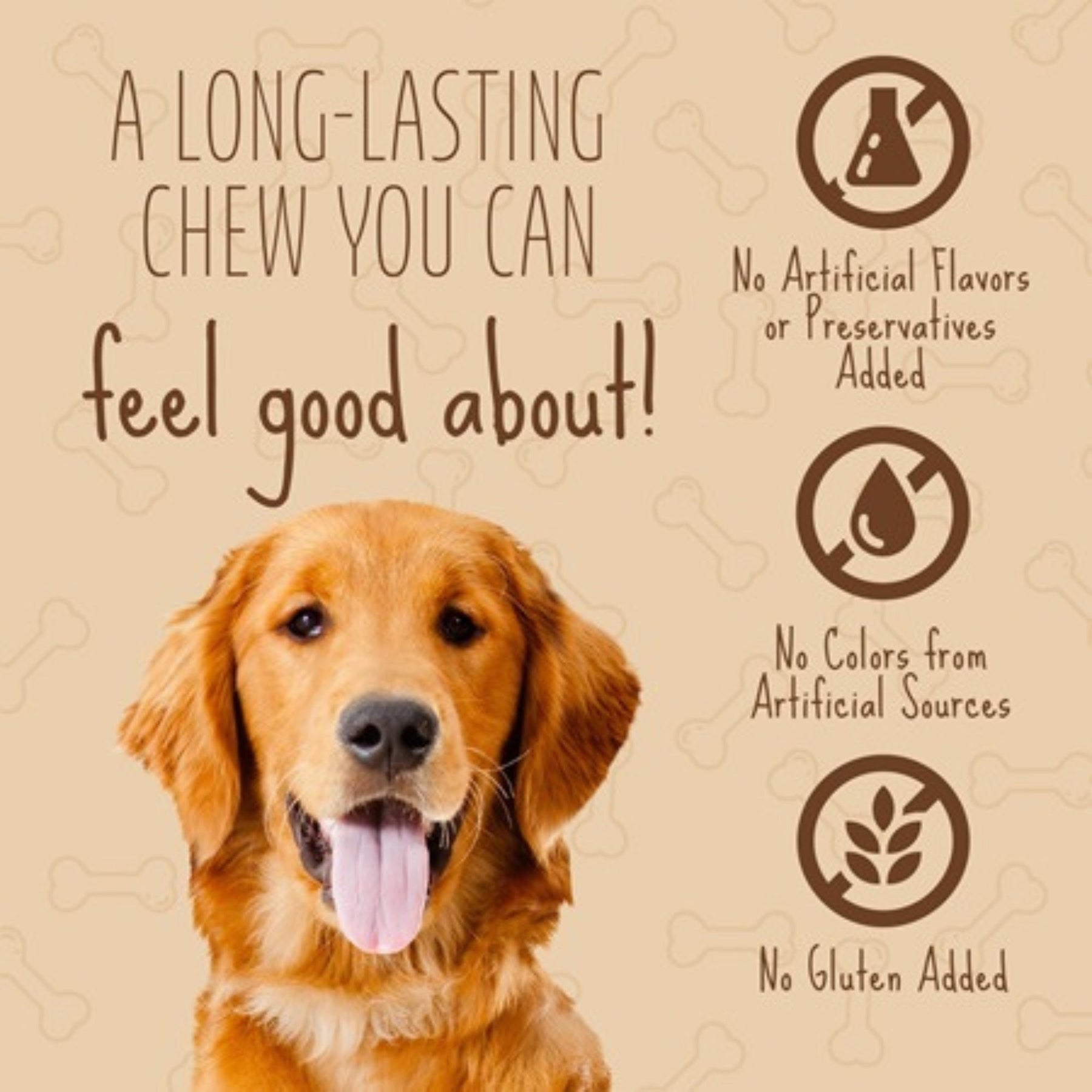 Better Belly brand offers a variety of highly digestible chews for your dog. Our unique manufacturing process helps break down rawhide fibers so your pup can digest them faster. With no grain or gluten added, no artificial flavors added and no colors from artificial sources, you can treat your dog to a chew you both feel good about.