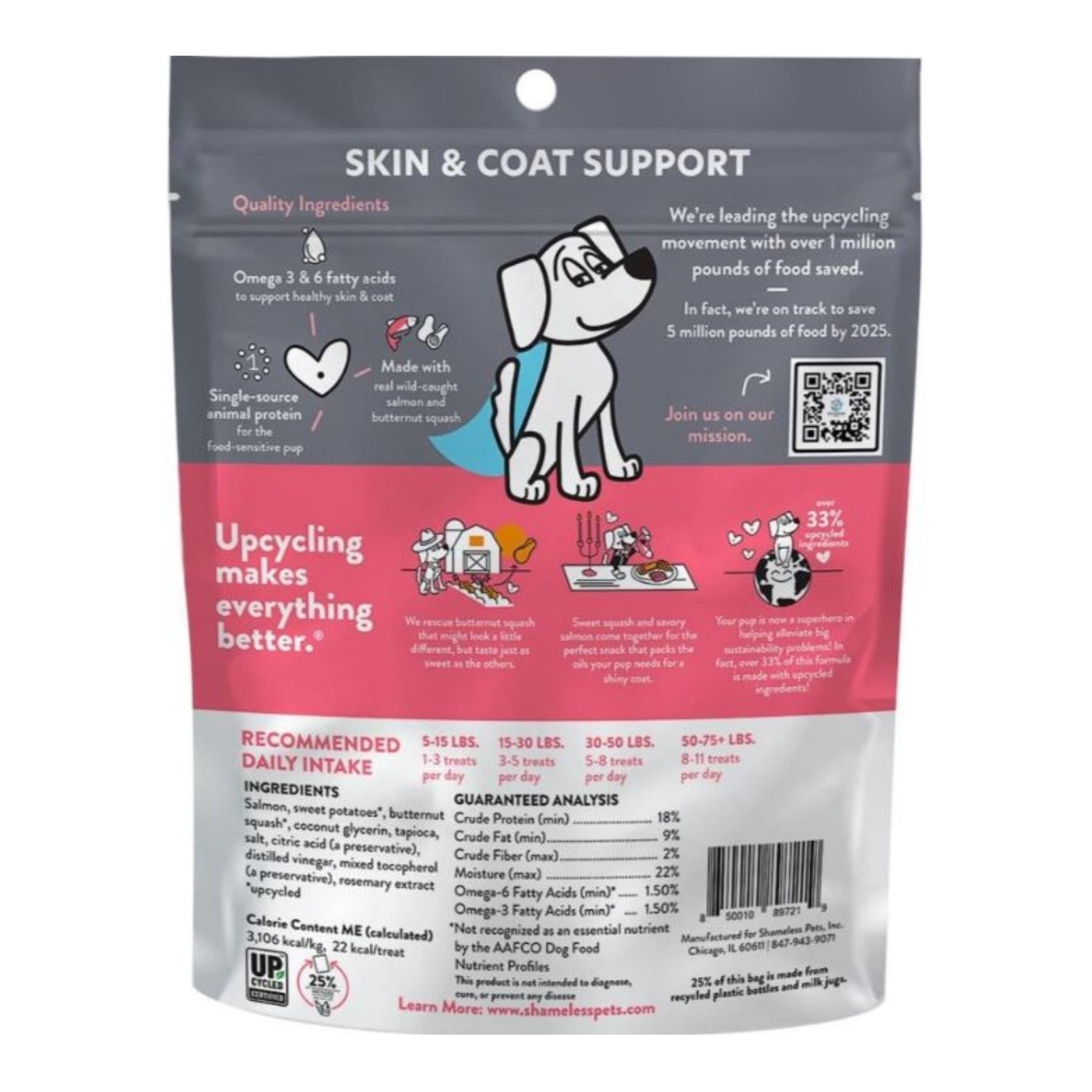 We're combining our wild-caught salmon with our upcycled butternut squash + sweet potatoes, to make for one hell of a new jerky treat for your pup.