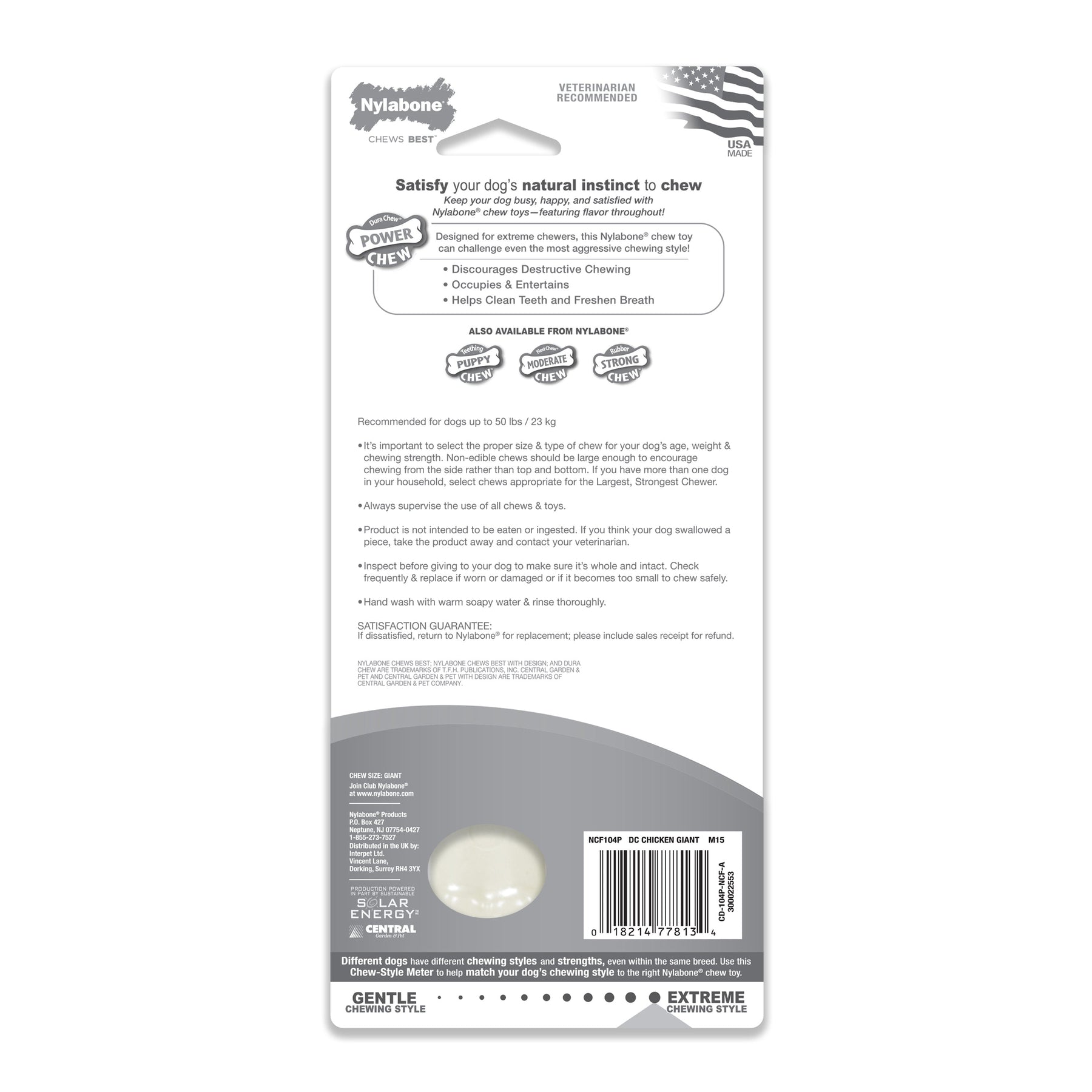 Give your dog something good to chew on. Made with tough, durable nylon, our Dura Chew Chicken Bone Dog Chew Toy satisfies powerful chewers. It provides long-lasting enjoyment, satisfies the natural urge to chew, and encourages positive chewing habits. Plus, the bristles raised during chewing promote clean teeth and help control plaque and tartar. Different dogs have different chewing styles and strengths, even within the same breed, so be sure to choose the correct chew toy size and strength for your dog. FUN & OCCUPYING Multi textured chew toy keeps dogs busy while satisfying their natural urge to chew|MADE OF DURABLE NYLON Long lasting dog chew toy challenges even the most aggressive chewers and discourages destructive chewing|PROMOTES DOG DENTAL HEALTH Ridges and nubs help prevent plaque and tartar buildup as dogs chew|MADE IN THE USA Dog chew toy is proudly made in the United States br/>Sold in Quantity of: 1