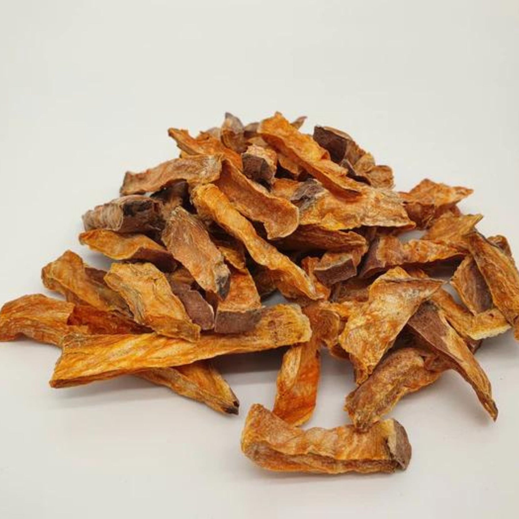 Frenched Sweet Potatoes are a great dog treat and a healthy rawhide alternative. This is a tough dog chew that is a natural rawhide replacement that helps with dental health and hygiene. Sliced french fry cut and made with no additives, soy, wheat, yeast or anything else other than sweet potatoes. All natural sweet potato dog treats made in the USA Frenched means that they are a fry cut compared to our strips. These are a healthy chewy vegetarian alternative to rawhide dog chews Loaded with healthy nutrients to keep you and your pet happy and healthy Natural chews that work great for dental hygiene and help clean teeth and gums Wholesome and delicious, Single ingredient, Nothing artificial, Satisfaction Guaranteed! Nice size of bag with 8oz of dehydrated sweet potato fries Rawhide Alternative Dog Treats