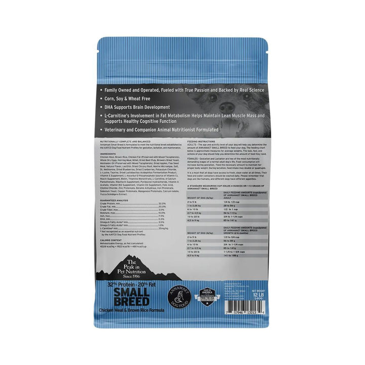 Our Small Breed dog food is the perfect fit to feed your dog from their puppy years all the way through their adult and senior years. Small breeds like Boston Terriers, Chihuahuas or Jack Russell Terriers need a more nutrient dense food as they eat smaller amounts of dog food per day. This small-breed-specific chicken and brown rice formula is also corn, wheat, & soy free.