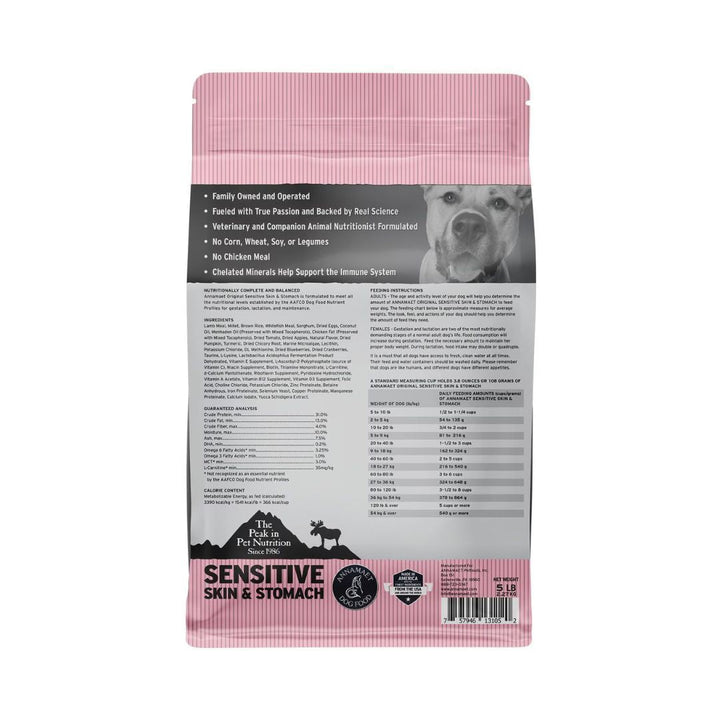 Annamaet Sensitive Skin and Stomach dog food is formulated to meet all the nutritional levels established by the AAFCO Dog Food Nutrient Profiles for gestation, lactation and maintenance.