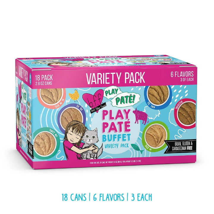 The Pate Partay! Pouch Variety Pack includes 3 each of your kitty's favorite B.F.F. PLAY! pouches: