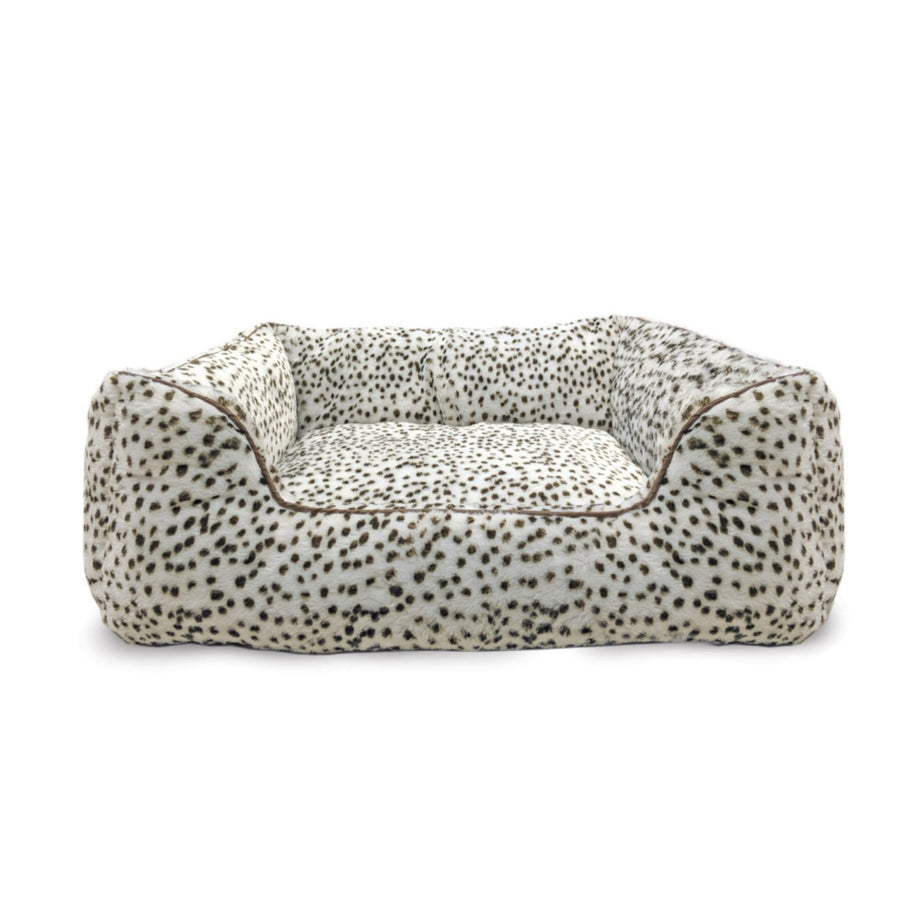 Soft plush leopard design. Easty step in with high walls for comfort and security. Made with 100% recyclable fill and machine washable.