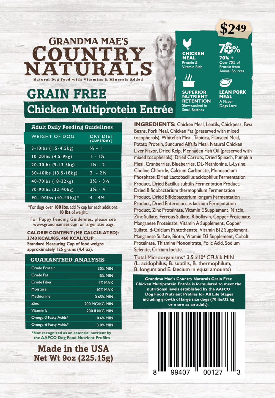 Grandma Mae's Country Naturals Premium All Natural Grain Free Dry Dog Food High-Protein Chicken 18ea/14 oz
