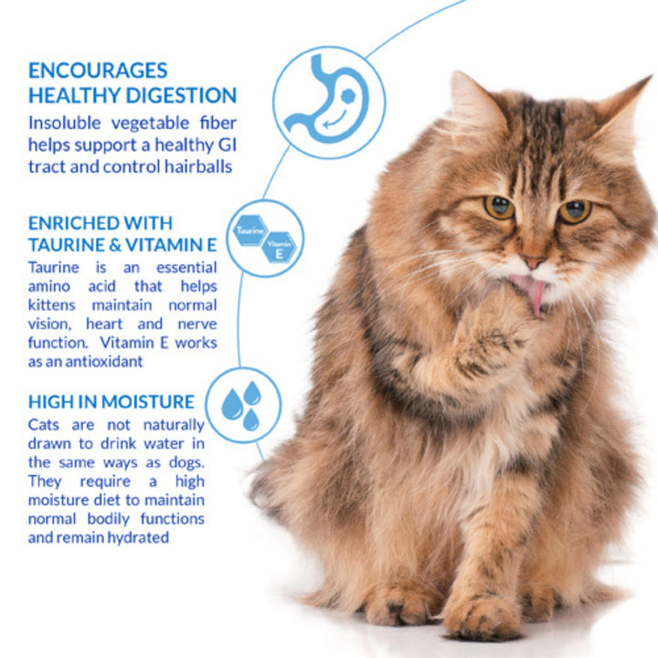 Your feline friend is important to us, so we've kept things like grains, preservatives, artificial colors, and carrageenan out of our cat treats, but we added things like Vitamin E for immunity and Taurine for overall health