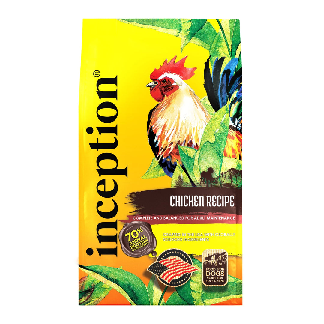 The inception chicken recipe is created with animal protein first to meet your canine’s companions needs. It’s also available in wet and dry formulas.