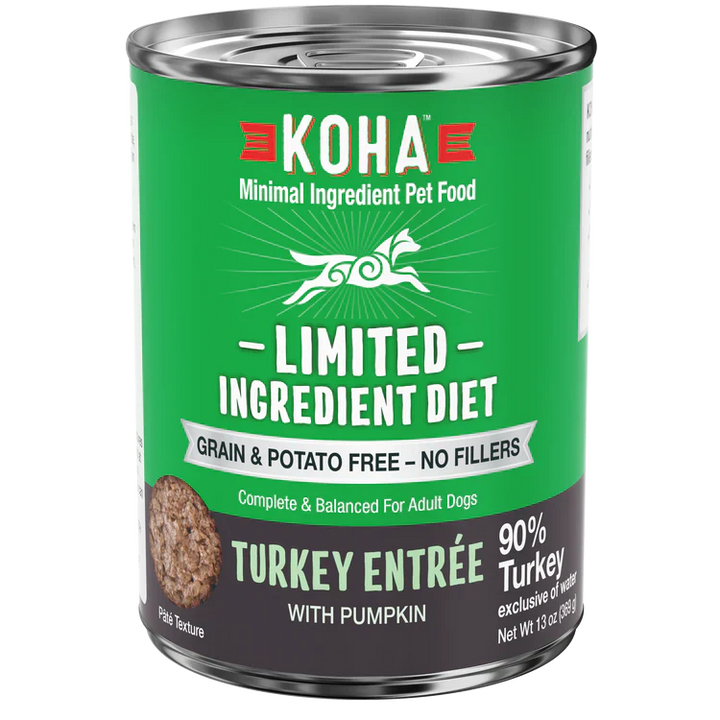 Help your pet thrive with KOHA Limited Ingredient Diet Turkey Entrée for Dogs. With only one meat per recipe, Limited Ingredient Diet is the best choice for extreme food sensitivities, digestive issues, or sensitive stomachs. We put no unnecessary carb-loaded fillers such as grains, potatoes, wheat, corn, soy or carrageenan that can lead to digestive issues.