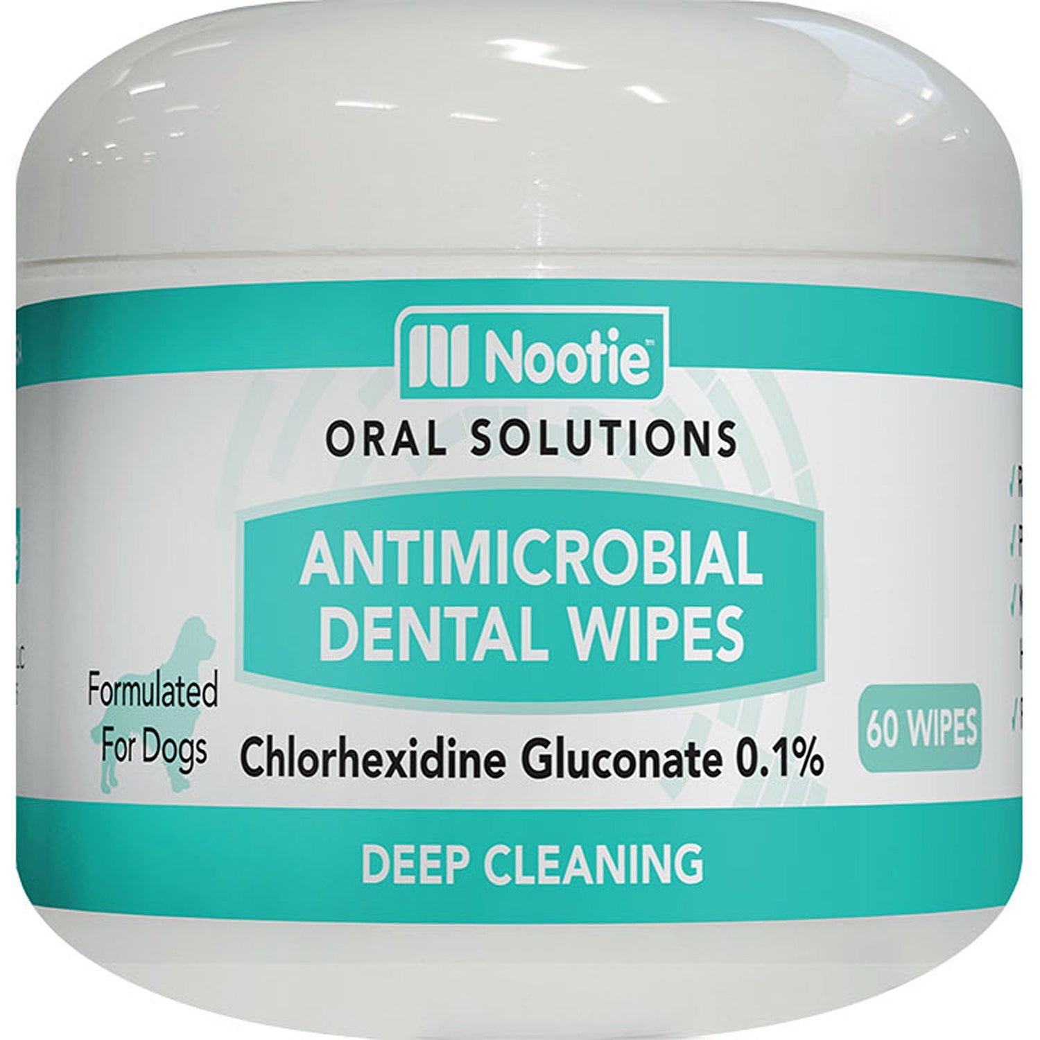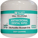 Keep your dogs teeth super clean and shiny with Nootie Antimicrobial Dental Wipes! These deep-cleaning wipes remove plaque and tartar, freshen breath, kill harmful bacteria, and prevent plaque, tooth decay, and gum disease. With Nootie Antimicrobial Dental Wipes, your poochs teeth will be sparkling clean! Active Ingredient is 0.1% Chlorhexidine Gluconate. Made in USA.Active Ingredient 0.1% Chlorhexidine Gluconate Other Purified water, polysorbate 20, potassium sorbate, peppermint oil, spearmint oil, baking soda, peppermint flavor "