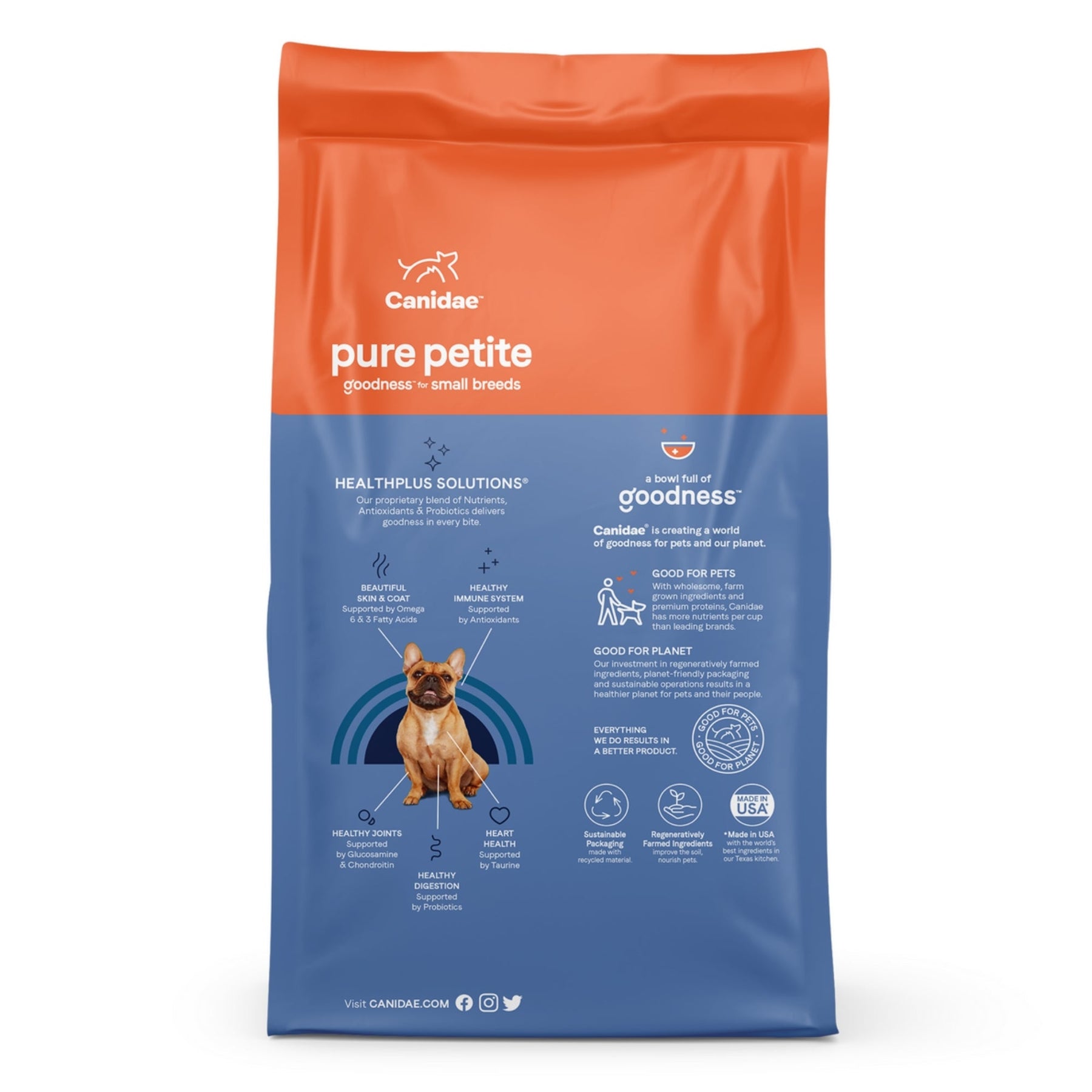 Canidae Pure Petite With Grains Limited Ingredient Dry Dog Food for Small Breeds with Chicken offers your small dog a well-rounded meal that's been crafted with their health and well-being in mind. The first ingredient in this limited ingredient dog food recipe is real chicken that is paired with whole ingredients, including wholesome grains like barley & oatmeal. Canidae Pure Petite hypoallergenic dog food is made without corn, wheat or soy, making it ideal for small pups with sensitive stomachs. This freeze-dried dog food kibble is also raw coated with chicken for great tasting nutrition that even the finickiest of small dogs is sure to love. Formulated specifically for small adult dogs, this grain-inclusive dry dog food features a small kibble size that is perfect for petite dogs, along with antioxidants that help support their immune system and probiotics to support a healthy digestive system. With high quality, wholesome ingredients, Canidae Pure Petite small breed dry dog food gives your pet the goodness they deserve.
