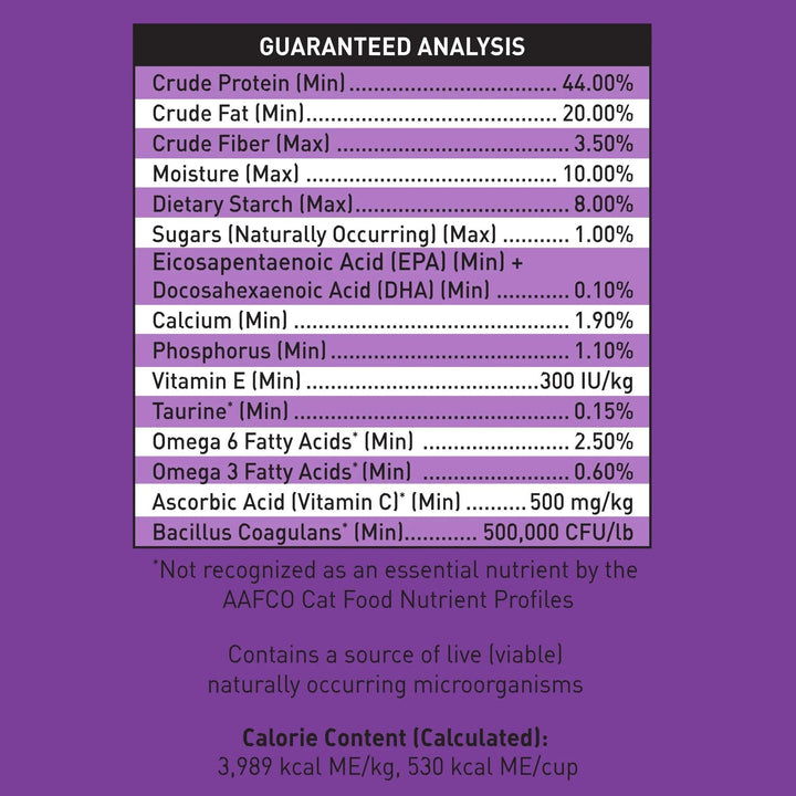 Scientifically formulated with ultra-low carbohydrates (less than 8% dietary starch) to provide more carnivorous amino acids from meat-based protein ingredients