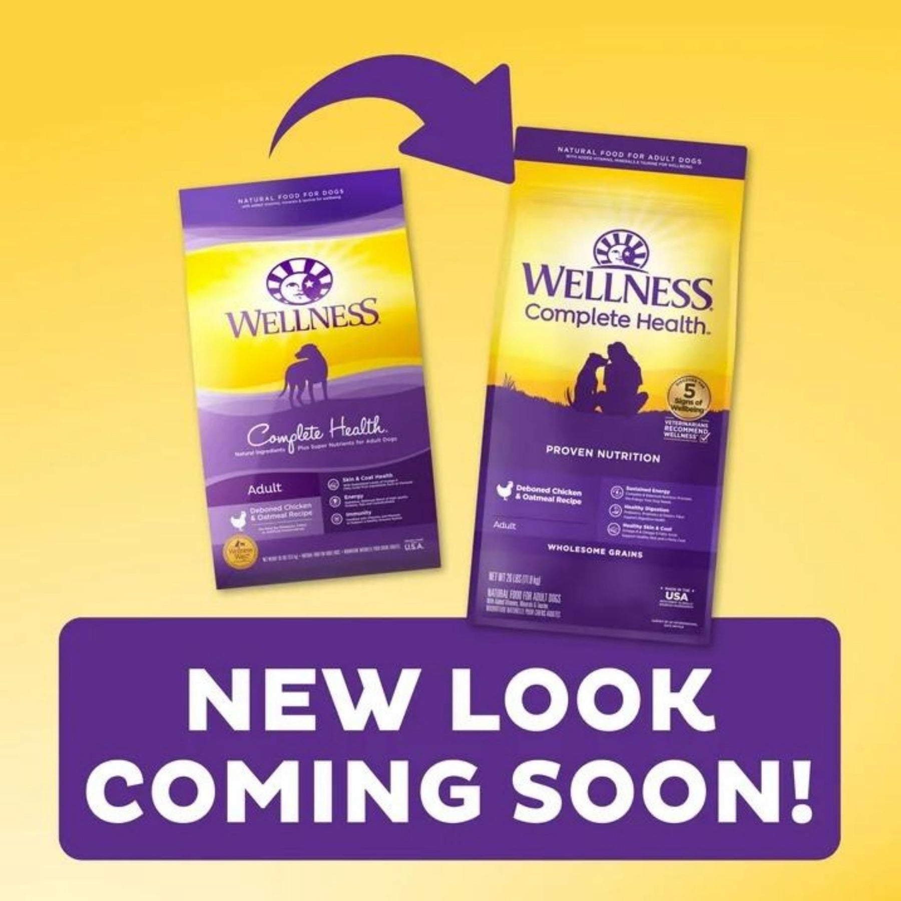 Wellness Complete Health natural pet food is made with carefully chosen, authentic ingredients for everyday health. A nutrient-rich blend of whole foods to fulfill the unique health needs of your dog, providing whole-body nutritional support to promote complete health. Supported by omega fatty acids, antioxidants, glucosamine, probiotics and taurine for a healthy heart. Scientifically crafted by our team of veterinarians and scientists to provide nutrition for a lifetime of wellbeing. Easily add our food to your dog food storage container for a fresh scoop of dog food every time. Your small dog, large dog, senior dog, adult dog or puppy will love our tasty grained and grain free dog food options. We produce our high protein dog food in the USA with globally sourced ingredients. Whether you're looking for beef dog food, lamb dog food, chicken dog food, salmon dog food, or whitefish dog food, there is a recipe for you! Try our entire portfolio of high quality dog food today.