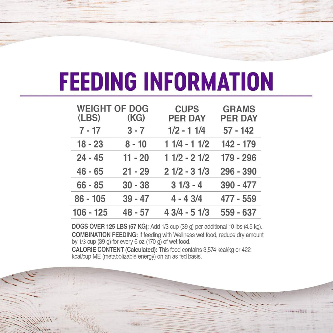 Wellness Complete Health natural pet food is made with carefully chosen, authentic ingredients for everyday health. A nutrient-rich blend of whole foods to fulfill the unique health needs of your dog, providing whole-body nutritional support to promote complete health. Supported by omega fatty acids, antioxidants, glucosamine, probiotics and taurine for a healthy heart. Scientifically crafted by our team of veterinarians and scientists to provide nutrition for a lifetime of wellbeing. Easily add our food to your dog food storage container for a fresh scoop of dog food every time. Your small dog, large dog, senior dog, adult dog or puppy will love our tasty grained and grain free dog food options. We produce our high protein dog food in the USA with globally sourced ingredients. Whether you're looking for beef dog food, lamb dog food, chicken dog food, salmon dog food, or whitefish dog food, there is a recipe for you! Try our entire portfolio of high quality dog food today.