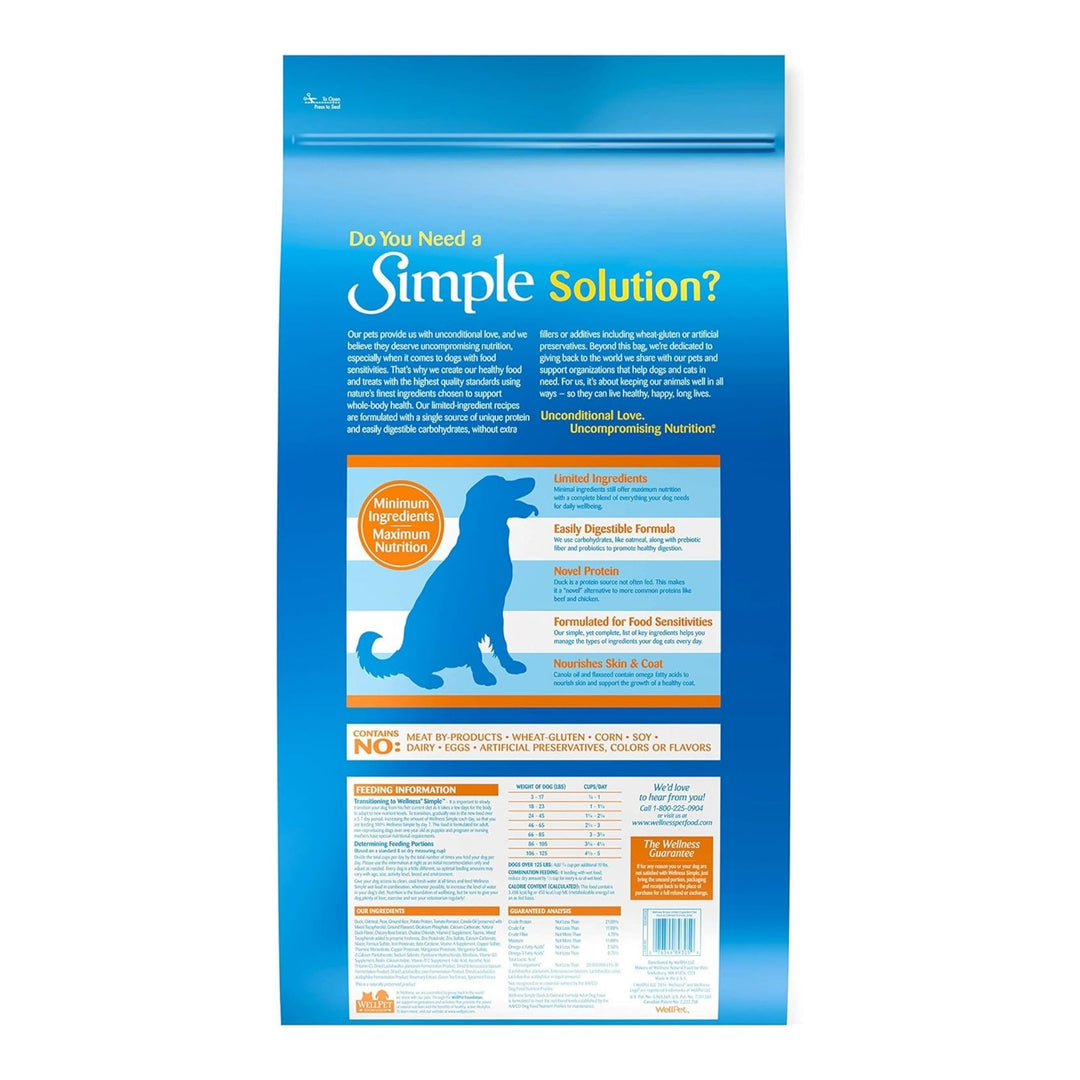 Wellness Simple Natural Limited Ingredient Dry Dog Food is healthy, natural limited ingredient diet dog food formulated for allergy prone adult dogs or adult dogs with food sensitivities, allergies or ingredient intolerances. Wellness Simple Limited Ingredient Diet dog food formulas keep it simple with a balance of single source of protein and easily digestible carbohydrates, without extra fillers or additives, including no meat by-products, wheat, corn, dairy, eggs, artificial preservatives, colors or flavors. Wellness Simple Limited Ingredient Dry Dog Food is a natural alternative to the therapeutic diets most commonly prescribed to dogs with food allergies and food sensitivities. Dogs with food allergies and food sensitivities should always be under the care of their veterinarian.