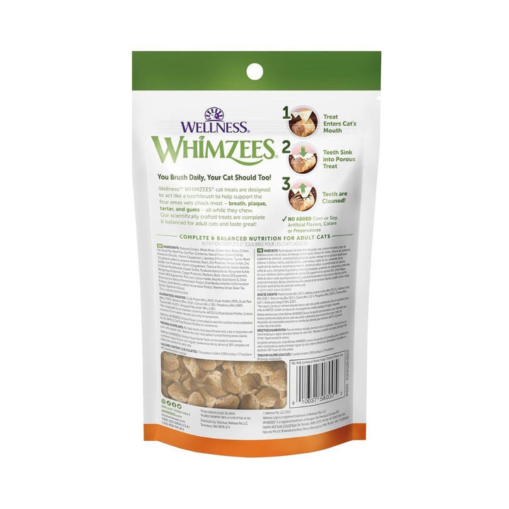 You brush daily, your cat should too! Wellness WHIMZEES® cat treats are designed to act like a toothbrush to help support the four areas vets check most - breath, plaque, tartar, and gums - all while the chew. Our scientifically crafted treats are complete & balanced for adult cats and taste great!